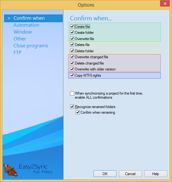 On this page you can configure when Easy2Sync should ask before performing an operation.
