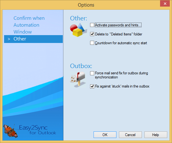 Delete to "Deleted Items" folder: If activated, deleted items will no be deleted by the sync on the other side, but moved in to the "Deleted Items" folder instead.
