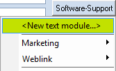 You can use the menus to use the text modules. Or you can use the search function and / or the tree to use text modules by double-clicking them. (Tip: To edit hold the shift-key while clicking on the text module or the toolbar.)